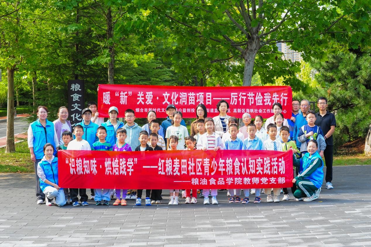 9月20日上午,山东商务职业学院粮油食品学院教师党支部以“红粮麦田”党建品牌为抓手,联合烟台大学食品学科带头人彭新颜教授、烟台高新区蓝海社区,共同开展“红粮麦田”社区青少年粮食认知实践活动。20多名来自蓝海社区的青少年朋友们走进学院粮食文化教育基地,沉浸式体验粮食科技、营养知识,培养节粮爱粮意识,让“红粮麦田”爱粮护粮的种子在青少年心中生根发芽。