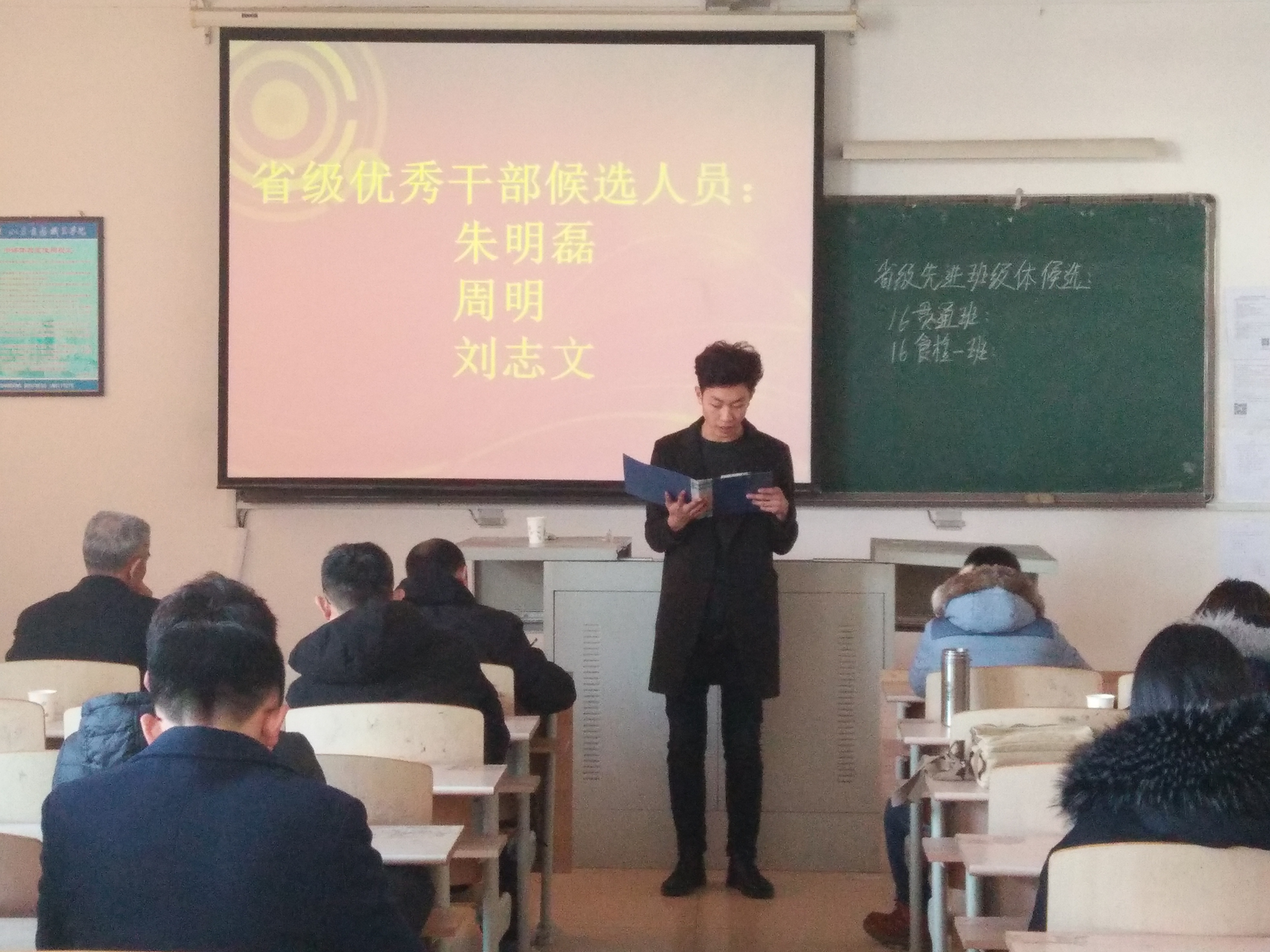 寒假前,食品工程系根据学院要求将评选通知下达各班级。本次参加系部评审大会的候选人是经过自愿申报、班级评议、系部资格审核的环节确定下来的。