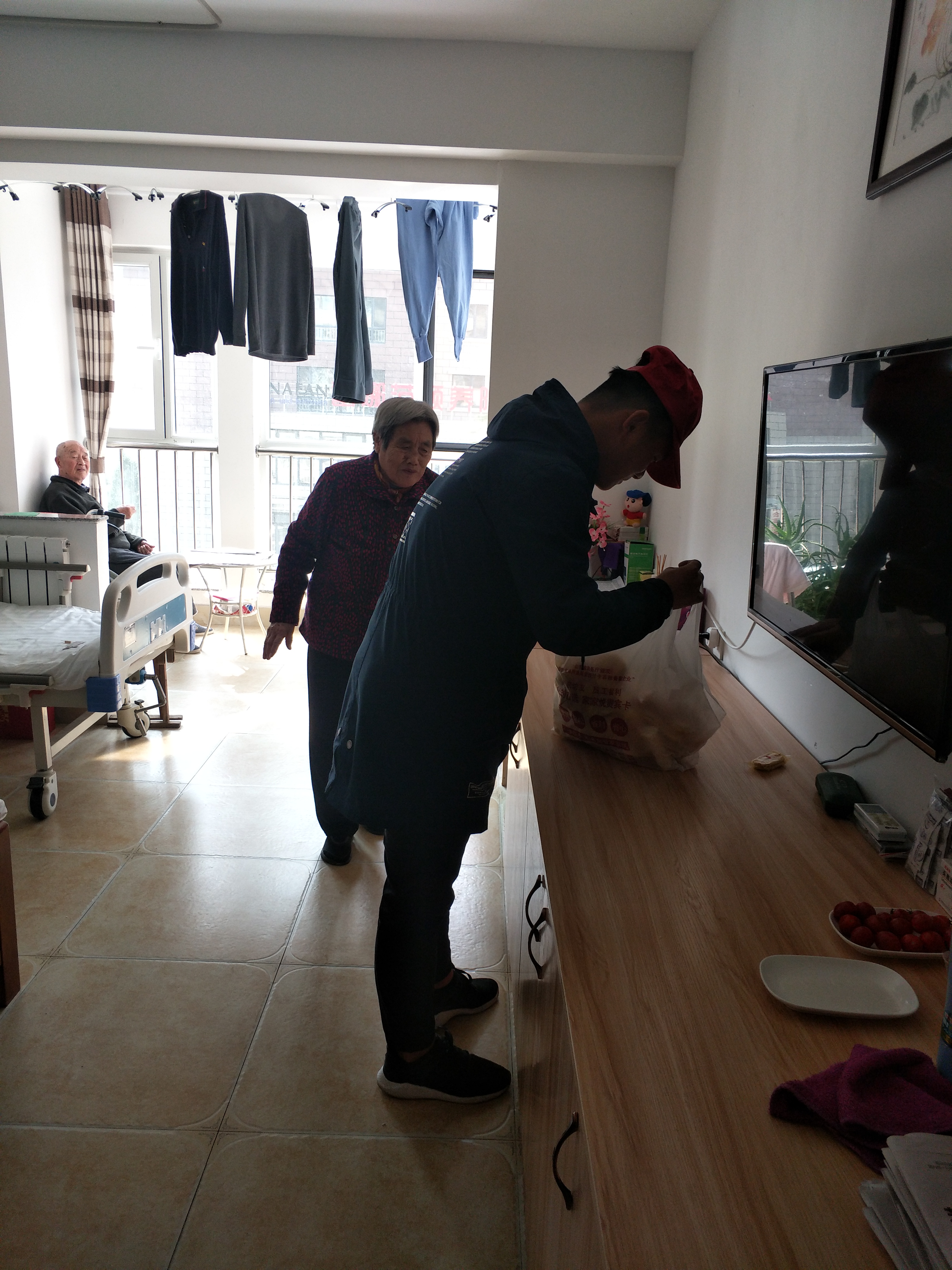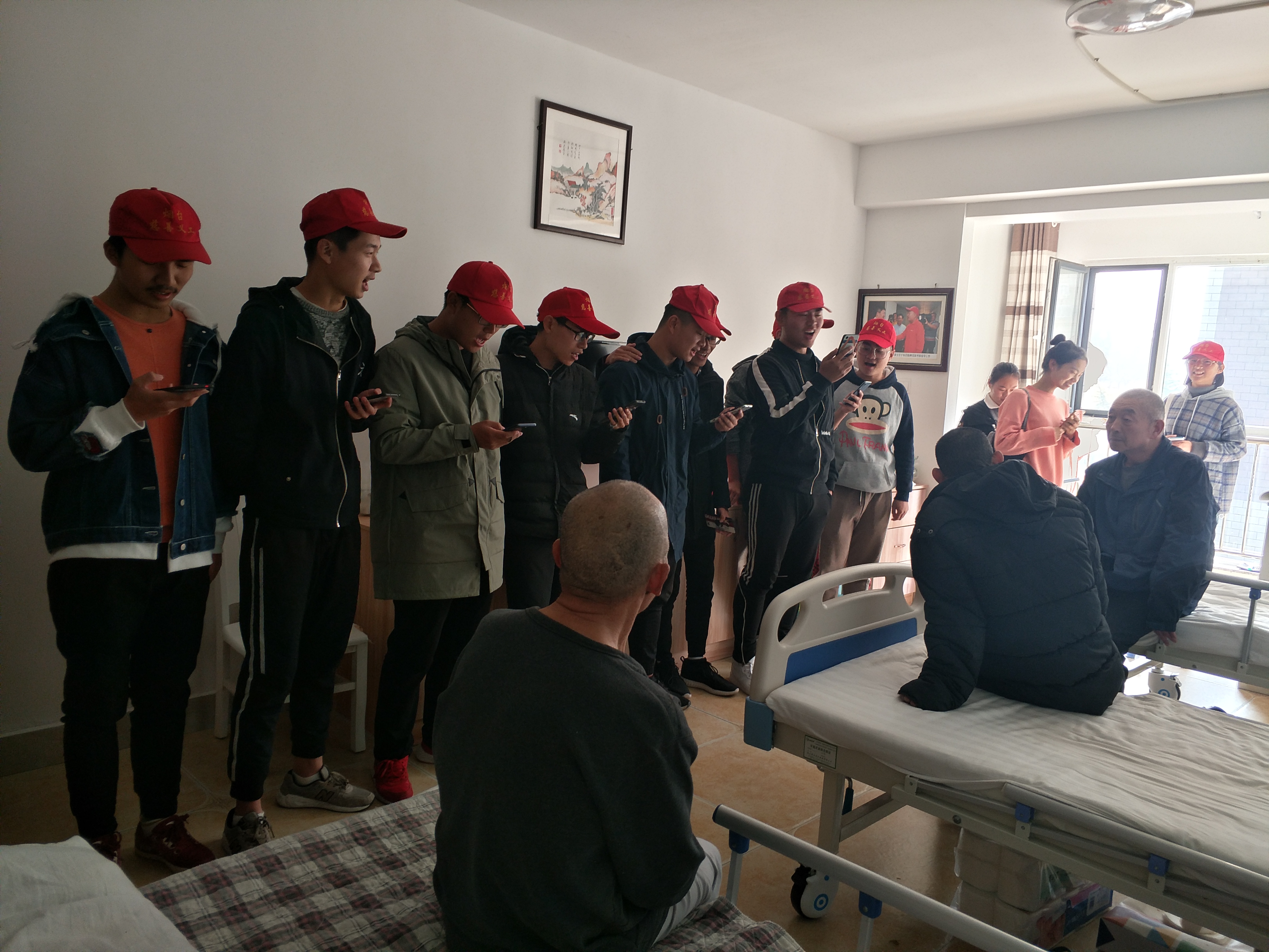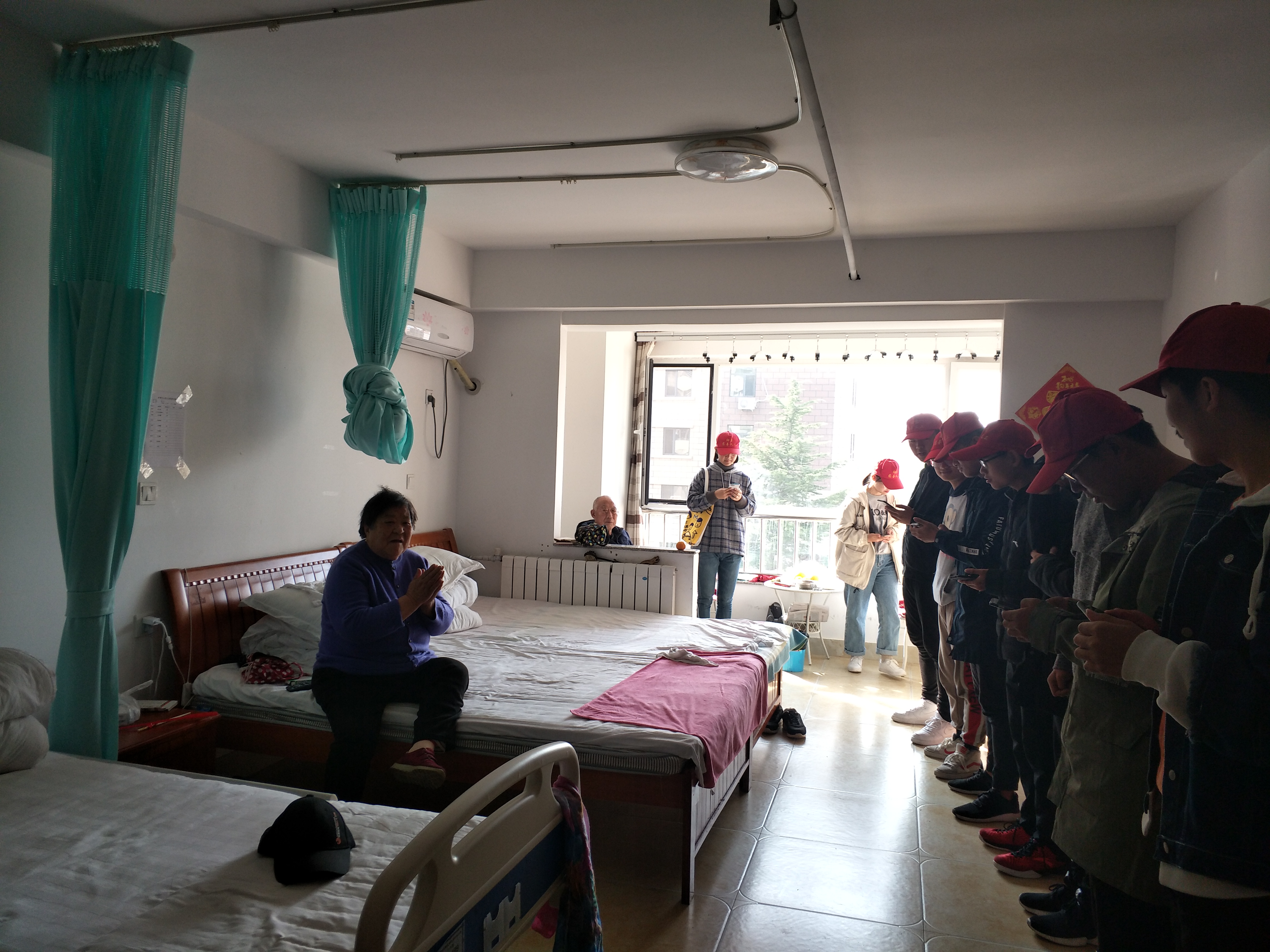 2018年11月10日早上八点三十两个系的义工们在中心大道集合,负责人将队伍分成表演组、读书组、卫生组,九点整在负责人的带领下到达御花园老年公寓,主任和老人们非常欢迎义工们的到来。表演组的义工们为老人上演了自编的舞蹈、提前排练好的相声,还有歌曲大合唱。唱歌曲时,老人们也热情地跟义工们一起唱《东方红》等歌曲,令整个敬老院充满欢笑声。读书组的义工们都认真听爷爷奶奶讲述改革开放前后的个人经历,令义工们了解我们今天的幸福是来之不易,义工们也将自己在带来的图书分享给老人,和老人一起欣赏书中的故事,义工们也向爷爷奶奶讲述了自己的情况以及自己家乡的建设并和老人们进行了交流。卫生组的义工们也认真的帮助清洁阿姨们打扫房间和楼梯,并帮助老人们收拾床铺,整理衣服。最后,食品系的义工们将自己带来的饼干、面包等食物分给每个房间的老人,表示一下自己的小小心意,其中一位老爷爷眼睛里含着泪水拉着义工的手告诉她,说自己的儿子在国外,很长时间才能见一面,他非常感谢义工们给他带来温暖。在活动最后老人们跟义工们合照后依依不舍的道别,并且期待义工们下次的到来。