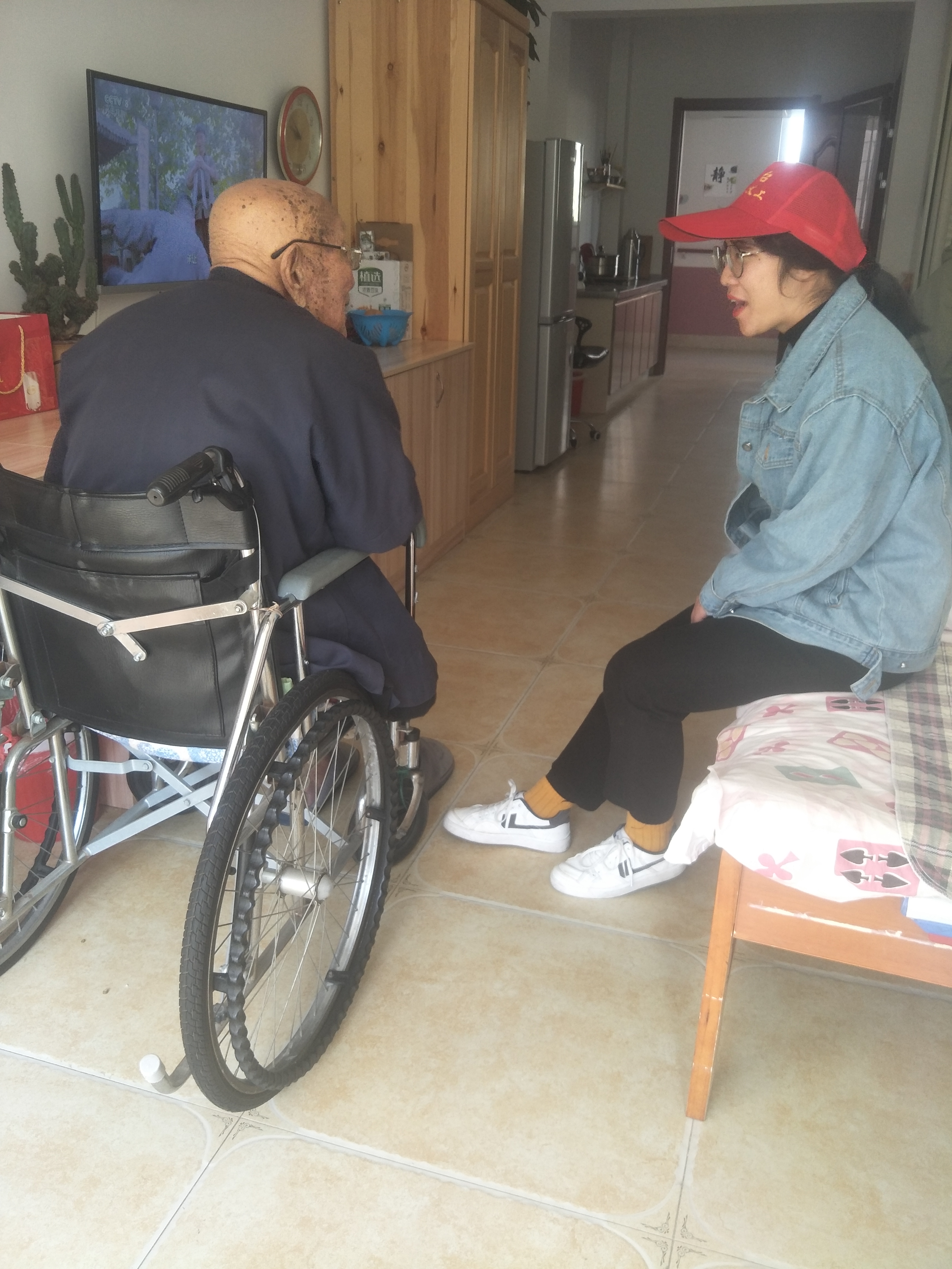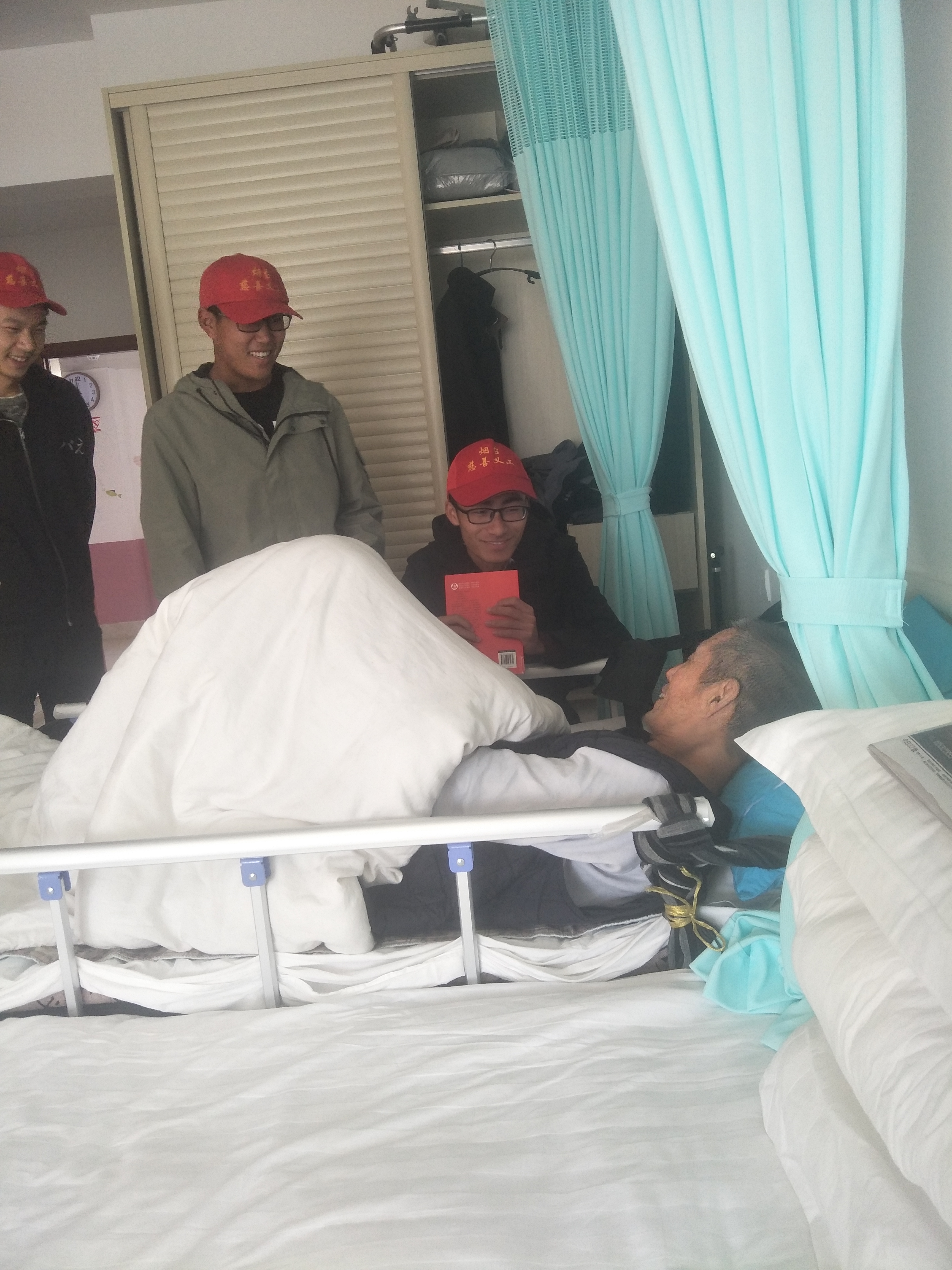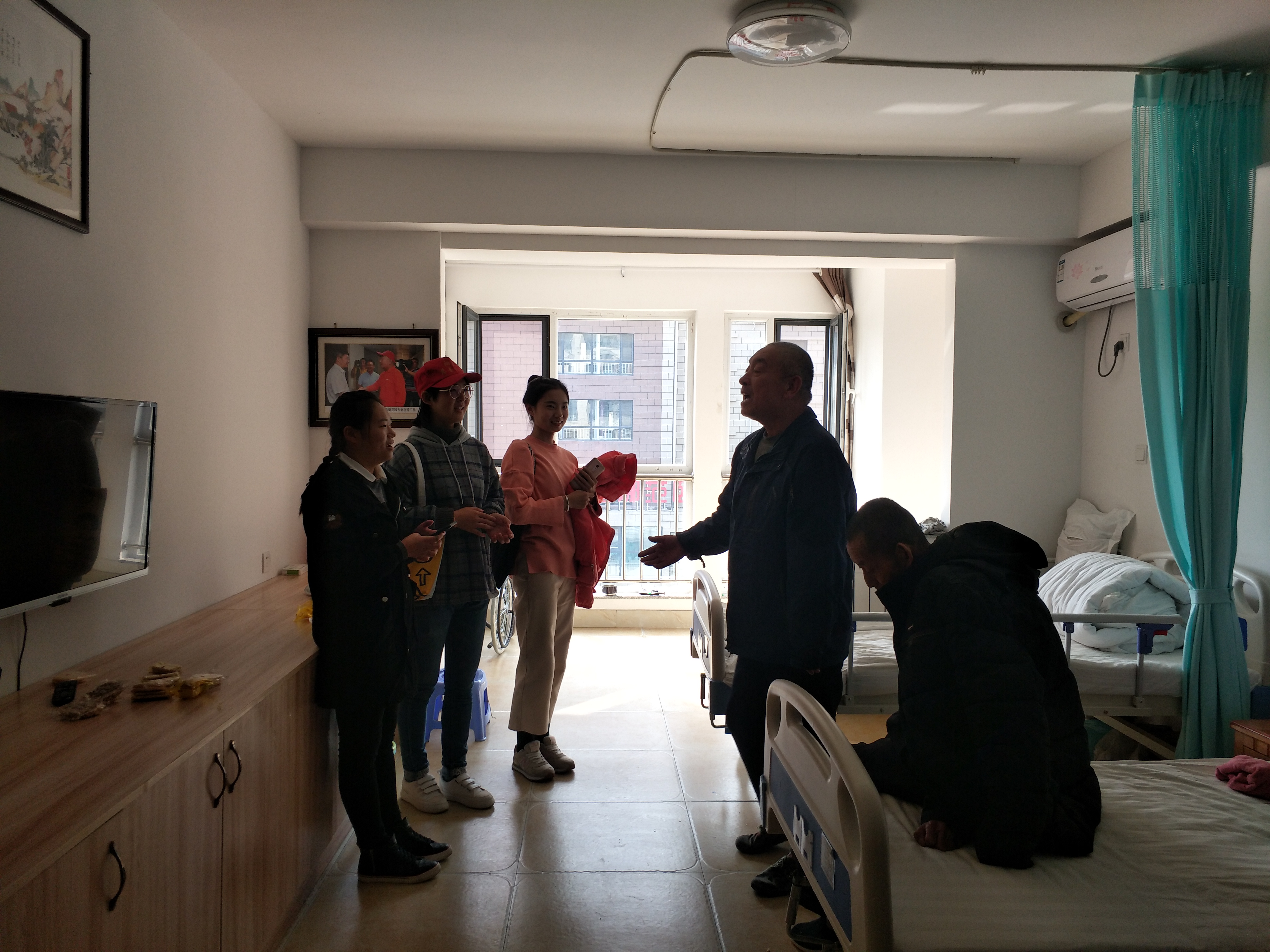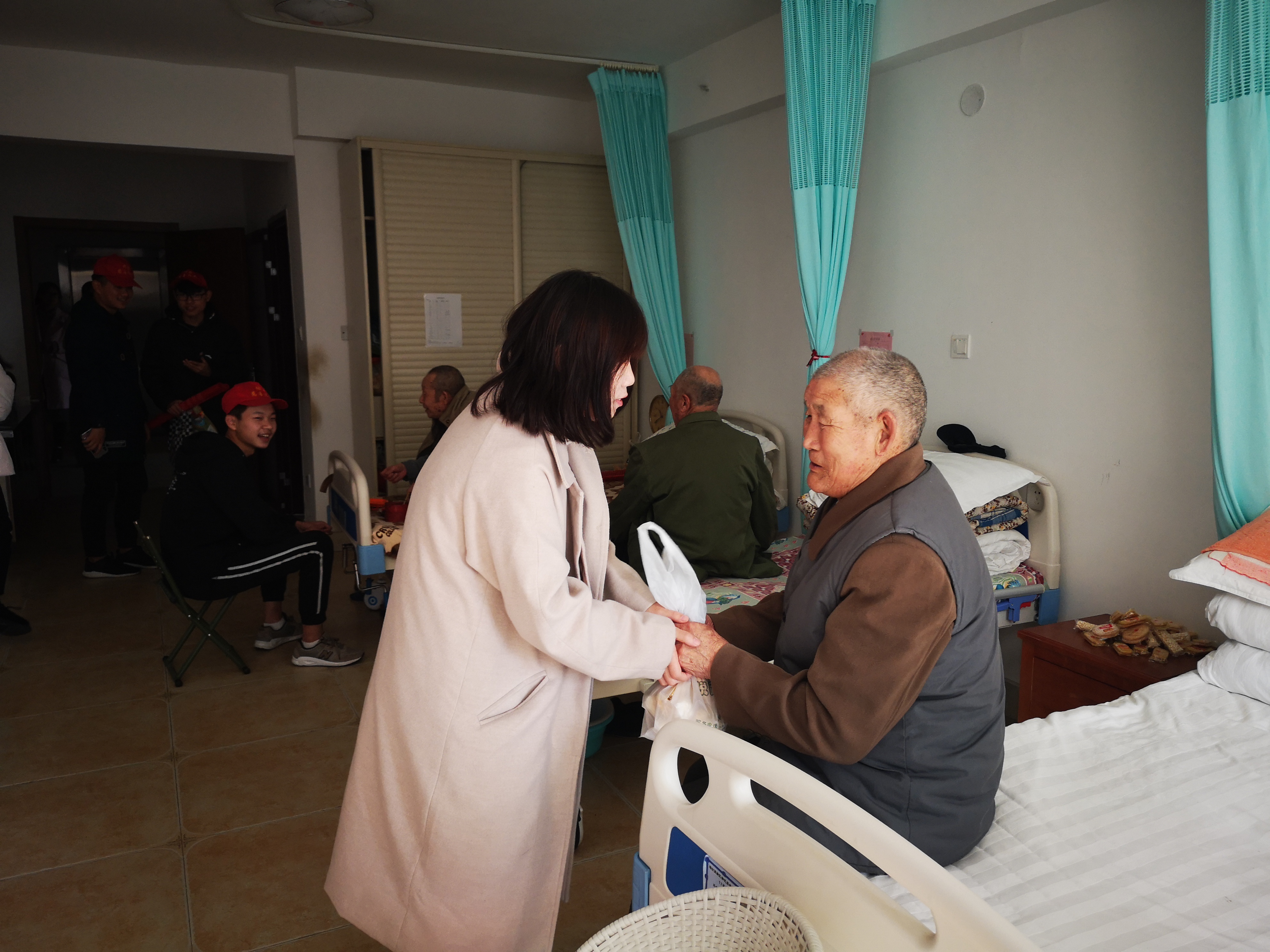 2018年11月10日早上八点三十两个系的义工们在中心大道集合,负责人将队伍分成表演组、读书组、卫生组,九点整在负责人的带领下到达御花园老年公寓,主任和老人们非常欢迎义工们的到来。表演组的义工们为老人上演了自编的舞蹈、提前排练好的相声,还有歌曲大合唱。唱歌曲时,老人们也热情地跟义工们一起唱《东方红》等歌曲,令整个敬老院充满欢笑声。读书组的义工们都认真听爷爷奶奶讲述改革开放前后的个人经历,令义工们了解我们今天的幸福是来之不易,义工们也将自己在带来的图书分享给老人,和老人一起欣赏书中的故事,义工们也向爷爷奶奶讲述了自己的情况以及自己家乡的建设并和老人们进行了交流。卫生组的义工们也认真的帮助清洁阿姨们打扫房间和楼梯,并帮助老人们收拾床铺,整理衣服。最后,食品系的义工们将自己带来的饼干、面包等食物分给每个房间的老人,表示一下自己的小小心意,其中一位老爷爷眼睛里含着泪水拉着义工的手告诉她,说自己的儿子在国外,很长时间才能见一面,他非常感谢义工们给他带来温暖。在活动最后老人们跟义工们合照后依依不舍的道别,并且期待义工们下次的到来。