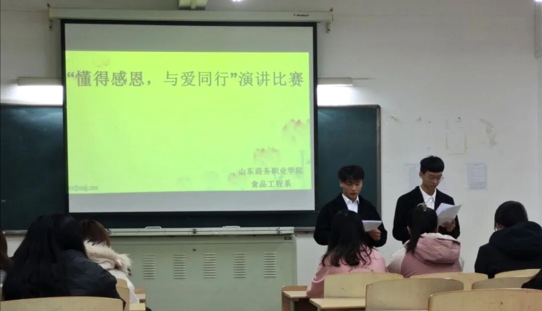 为了弘扬感恩精神,使同学们对感恩产生更加深刻的理解,使同学们懂得如何学会去感恩,并感恩身边每一位对自己有帮助的人,食品工程系秘书处于11月26日在2A310教室开展了主题为“心怀感恩”的朗诵比赛。