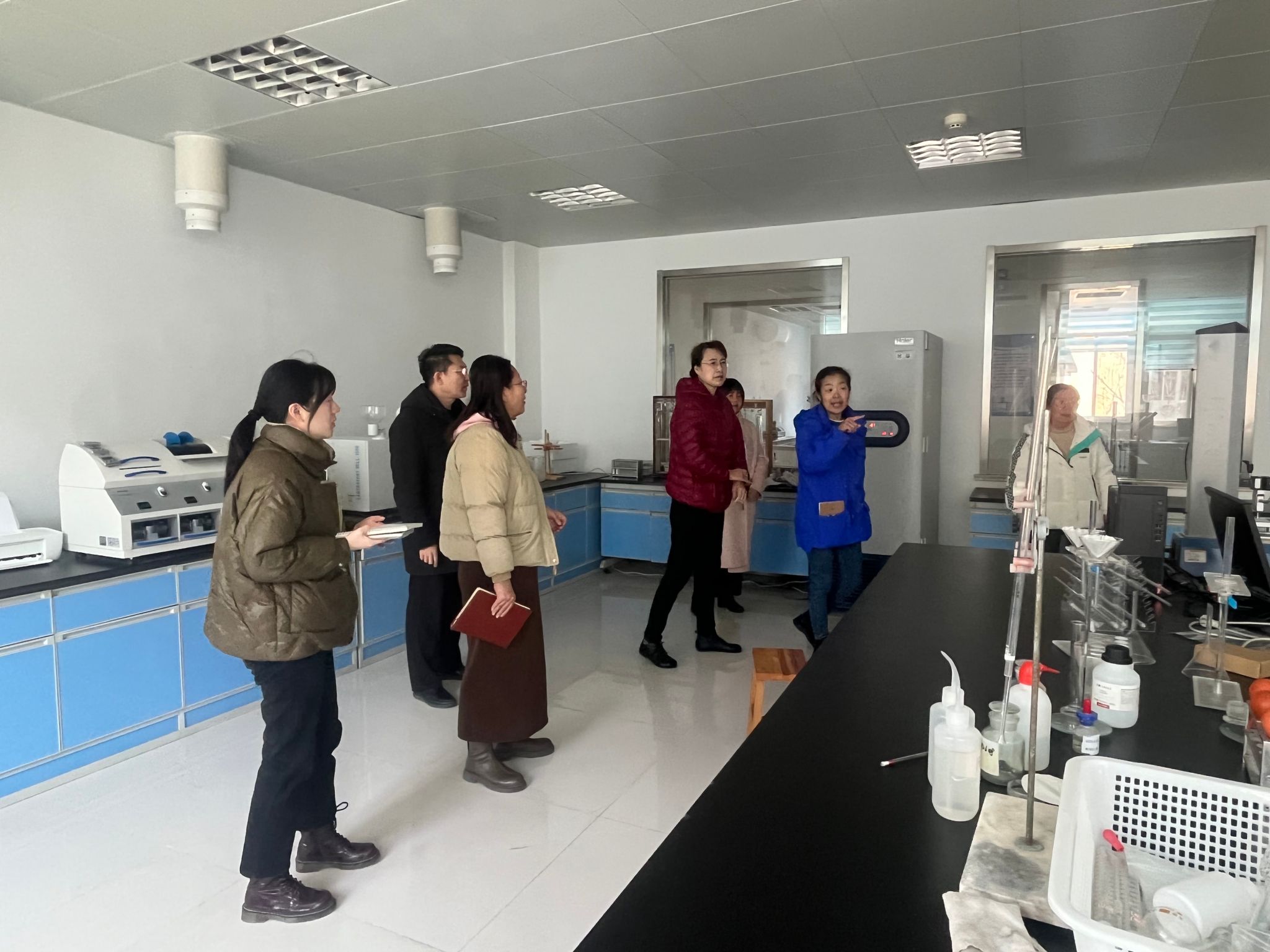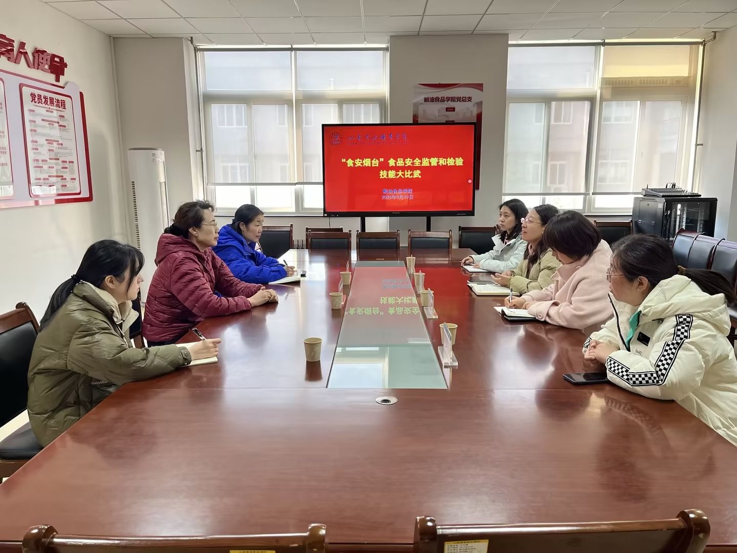 本站讯 近日,烟台市食品药品检验检测中心主任卫晓红、科长张燕、工程师王亚萍一行走进我校粮油食品学院,围绕2025年烟台市“食安烟台”食品安全监管和检验技能大比武活动的筹备工作展开深度洽谈。粮油食品学院院长黎海红、副院长邵珍美、食品检验检测技术专任教师熊素敏、就业辅导员张惠洁参加座谈。此次交流聚焦比赛场地及设备考察、科研合作、校企融合等核心议题,为深化校政合作、共筑食品安全防线按下“加速键”。