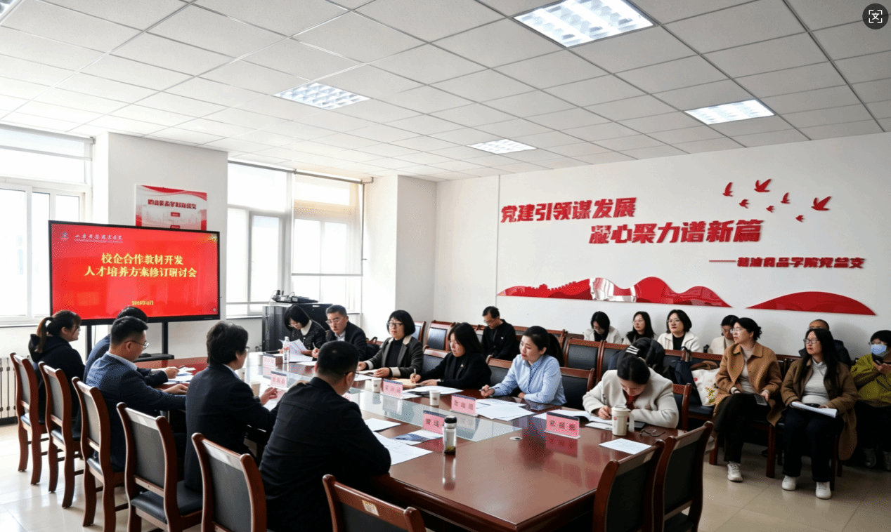 为深入贯彻落实国家关于深化现代职业教育体系建设改革的部署要求,扎实推动粮油食品行业产教融合走深走实,4 月 14 日,粮油食品学院隆重召开“校企合作教材开发与人才培养方案修订研讨会”。学院副院长邵珍美、黄丛聪,各专业带头人及骨干教师参会;乐陵鲁庆制粉有限公司总经理崔福磊、发达面粉集团股份有限公司人事总监吕正欣、滨州中裕食品有限公司技术总监赵成礼、金胜粮油食品有限公司研发中心主任费晓伟、青岛天祥食品集团有限公司副总经理宋福荣、人事经理袁晓妮、烟台富美特信息科技股份有限公司人事经理吕日新等行业企业专家应邀出席,校企双方聚焦教材建设与人才培养核心议题,开展深度交流、精准对接。