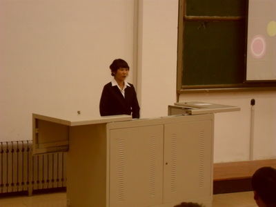 在嘹亮的伴奏曲下,首先由我系王道波主任、辅导员王东楠、杨倩倩老师为09级10级进行了优秀干事颁奖。随着颁奖仪式结束,大会开始第二项。由学生会、团总支各部新任部长上台进行就职演讲,各部长慷慨激昂,热情高涨,将自己辛勤工作一年来的心得和体会与大家分享,并于今后的工作作出详细的规划。在各部部长演讲过程中不时流露出对帮助自己、指导自己近一年的老师、部长深深地感激之情,对与自己共事一年的同事的团结友爱之情,一句句誓言、一份份承诺彰显出新部长对以后工作的强烈自信心、责任心和使命感,随后由我系导员发表讲话,表示看到我系学生干部对学生工作的支持与热情十分感动。