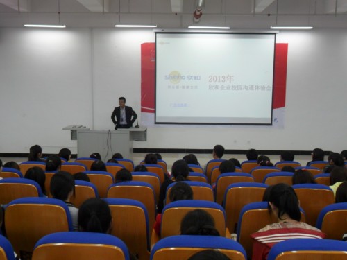 2012年10月12日上午10点,欣和企业在图书馆一楼报告厅针对食品工程系学生召开了招聘宣讲会。本次宣讲会主要针对我系食品营养与检测和食品生物技术两个专业的优秀学生到欣和企业实习工作。