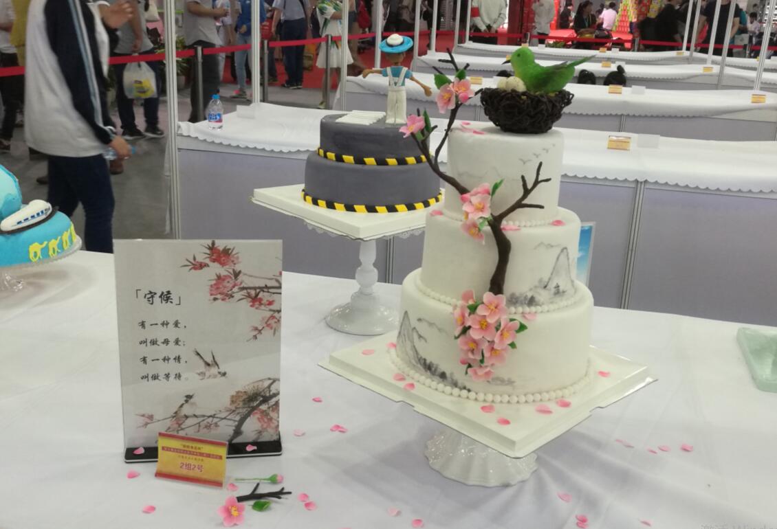 本次大赛优异成绩的取得,与我校大力提倡的”工匠精神”密不可分,也是食品工程系与青岛丹香食品有限公司深入开展“现代师徒制”人才培养的丰硕成果。为准备此次大赛,食品工程系联合校企合作单位——青岛丹香食有限公司,对参赛选手进行了集中培训。指导教师杨震和何忠宝指导参赛学生从作品的创意、构图、颜色搭配到作品意境、传递的人文气息等进行了反复研讨。他们的努力完美地体现在了参赛作品中:王雅致同学的获奖作品——“糖衣之恋”,是一款糖霜蛋糕,堪称本次学生大赛中难度最高作品之一,制作时手的轻微抖动都会导致作品失败。这件作品造型精美,淡雅高贵,错落有致,美轮美奂,本件作品为纯手工打造的西式造型蛋糕,其高超的技艺令全场观众十分震撼,并赢得了满堂喝彩;王婕妤同学的获奖作品——“守候”,是翻糖蛋糕中的创新之作,该作品布局合理、精致美观,映日红花,别样风情,非常具有观赏性,其山水部分完全是现场手工绘制而成,颇有大家风范,体现了中国传统的山水文化,又传递了母爱伟大的传统美德,堪称是一种美的享受。