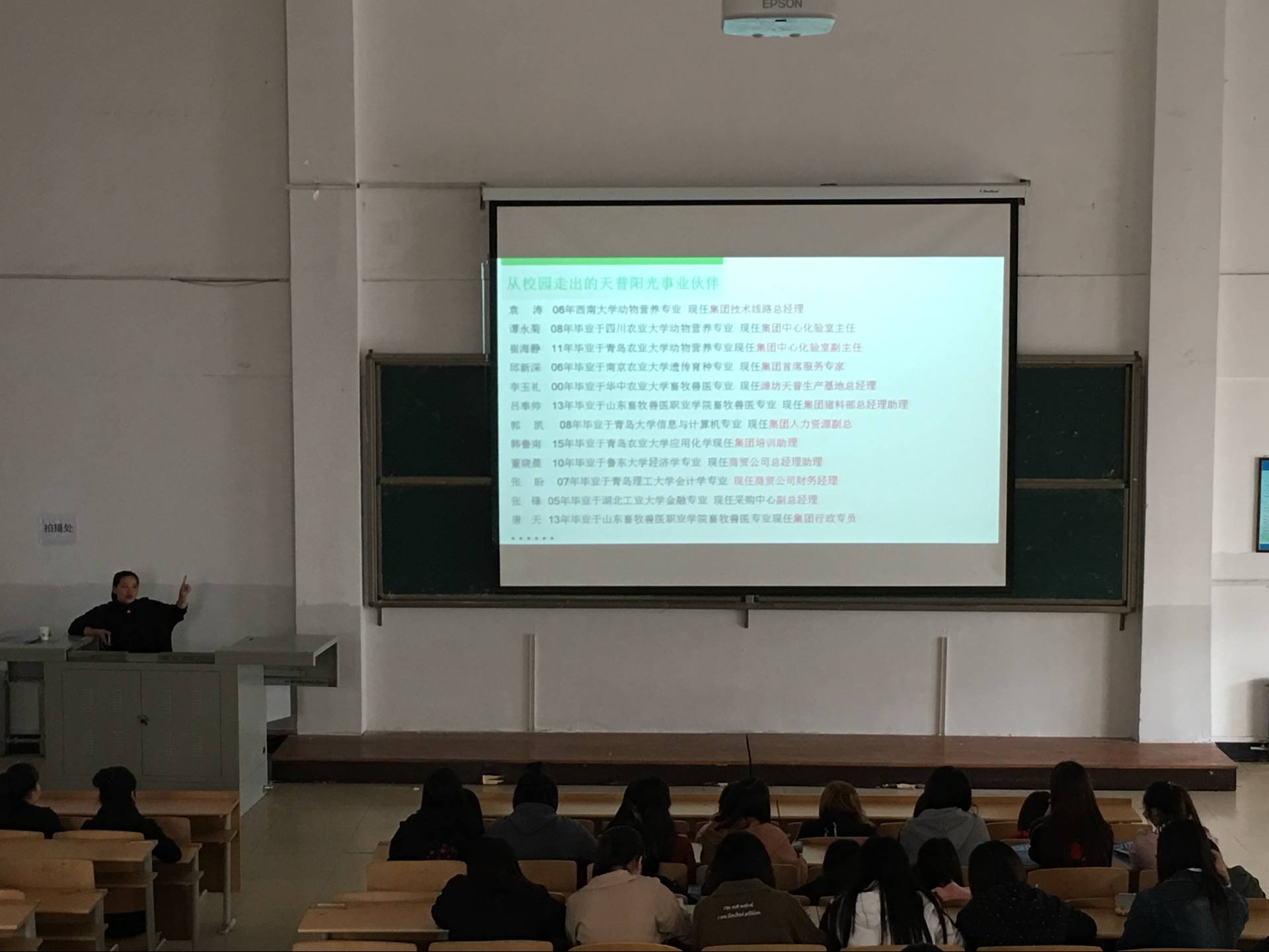 为更好的拓宽学生就业渠道,食品工程系于10月17日下午在二号教学楼阶梯教室举行天普阳光企业专场招聘会,食品工程系粮食工程专业、粮油储藏与检验专业、会计系部分学生满怀着激情和憧憬参加了这次招聘会。首先暴丽丽经理就公司背景,公司文化,公司现状及战略部署为现场学生们做了详细介绍,并通过企业宣传片,PPT展示,面对面交流等多种方式向同学们介绍了公司的发展概况、业务发展、人才队伍和未来规划,以及员工职业晋升通道与未来发展方向以及人员需求等,着重强调专科生也可以逆袭成神。企业看中学生的勤奋踏实,也表明企业特别需要大量的专业人才。不忘初心方得始终。一个人只要努力,只要坚持就能够成功。最终有20余名学生与企业达成了初步就业意向。