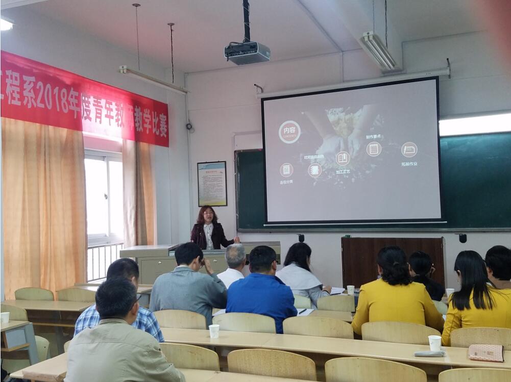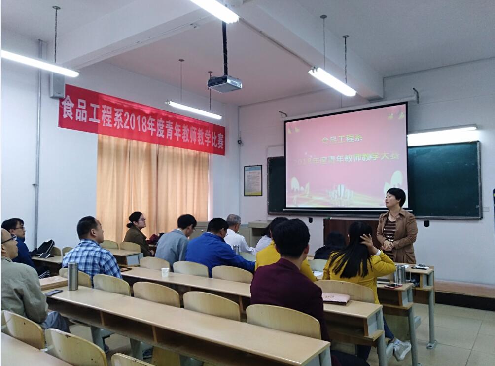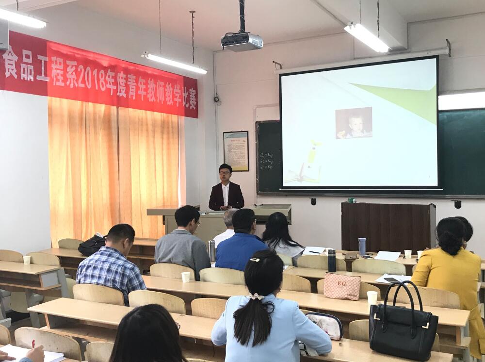 一支粉笔写春秋,三尺讲台竞风流。5月22日下午,食品工程系2018年度青年教师教学比赛在教学楼2A321拉开帷幕。出席本次大赛的评委由系党总支王德学书记、李苹苹副主任、张艳敏教授等8名教师组成。毕春慧、于海洋、邵珍美等十七名参赛老师以及观摩学生悉数到场。