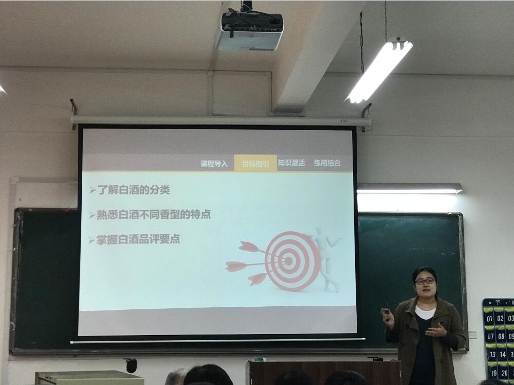 比赛在热烈的氛围中开始,按照比赛规则,老师要在短短的十几分钟把自己的课堂特色展现给大家。毕春慧老师不愧是国赛选手,一幅《战狼》电影海报和国酒茅台的图片,大大的吸引了评委的注意,顺理成章地通过像战狼一样的国酒茅台将白酒基础知识引入课堂;谦逊的于海洋老师用生动的图片,风趣幽默的语言把课堂变得活跃起来;邵珍美老师用自信的声音感染者每个人,她把课堂中抽象的难以理解的知识转换成我们日常熟知的事物,并用设问的方式,一问一答让问题更容易理解;张冬梅老师的课件制作得精美富有艺术性,有精心自制的视频,有唯美的面包图片,将原本普通的一堂面包制作课,硬是上成了一部“舌尖上的面包”的电视片。