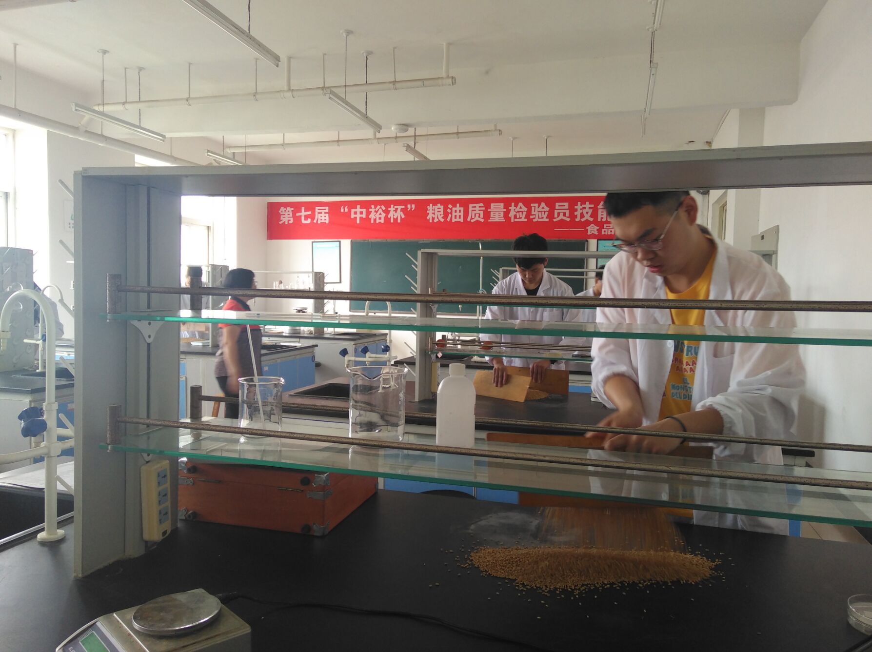 本站讯,6月4日下午,食品系实训楼F410实训室内,粮油质量检验员技能竞赛正在有条不紊地进行。来自17粮食工程专业、17粮油储藏与检测技术专业、17粮食工程专本贯通专业的13名选手经过理论知识的初赛选拔,进入了本轮大赛的决赛现场。