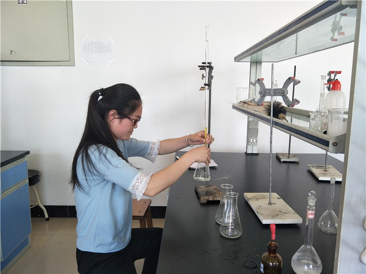 6月19日进行的初赛是以笔试形式进行选拔,同学们凭借着扎实的基础知识,最终有13名同学进入此次大赛的决赛,参加此次大赛参赛的同学准时到达比赛地点,赛前大家认真了解比赛规则并进行了赛前培训,以饱满的热情对待这次比赛。此次大赛以实验操作的熟练性和实验数据的准确性作为评分依据,进行了《酸碱滴定实验》和《紫外—可见分光光度计的使用》两个实验项目的考核。第一轮的实验中,参赛者将溶液进行稀释后进行滴定,一丝不苟地进行实验,努力做到最好。随着时间的流逝,比赛也充满了紧张感。在第二轮的实验中,参赛选手们保持精神高度集中,准备实验用品、配制溶液、做出标准曲线、记录数据、出具实验报告,一切都在有条不紊的进行。参赛选手各显身手,利用自己扎实的专业知识,细致而认真的操作,出色地完成了此次大赛的实验任务。