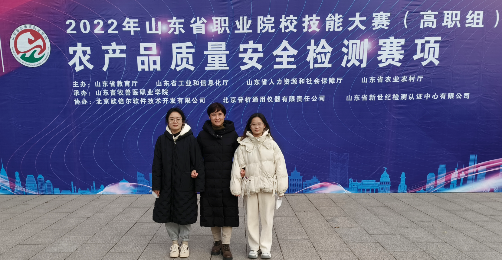 12月16日-19日,山东省高职院校“农产品质量安全检测”赛项在山东畜牧兽医职业学院举行,我校崔丽颖、张文菲两位同学荣获团体三等奖。