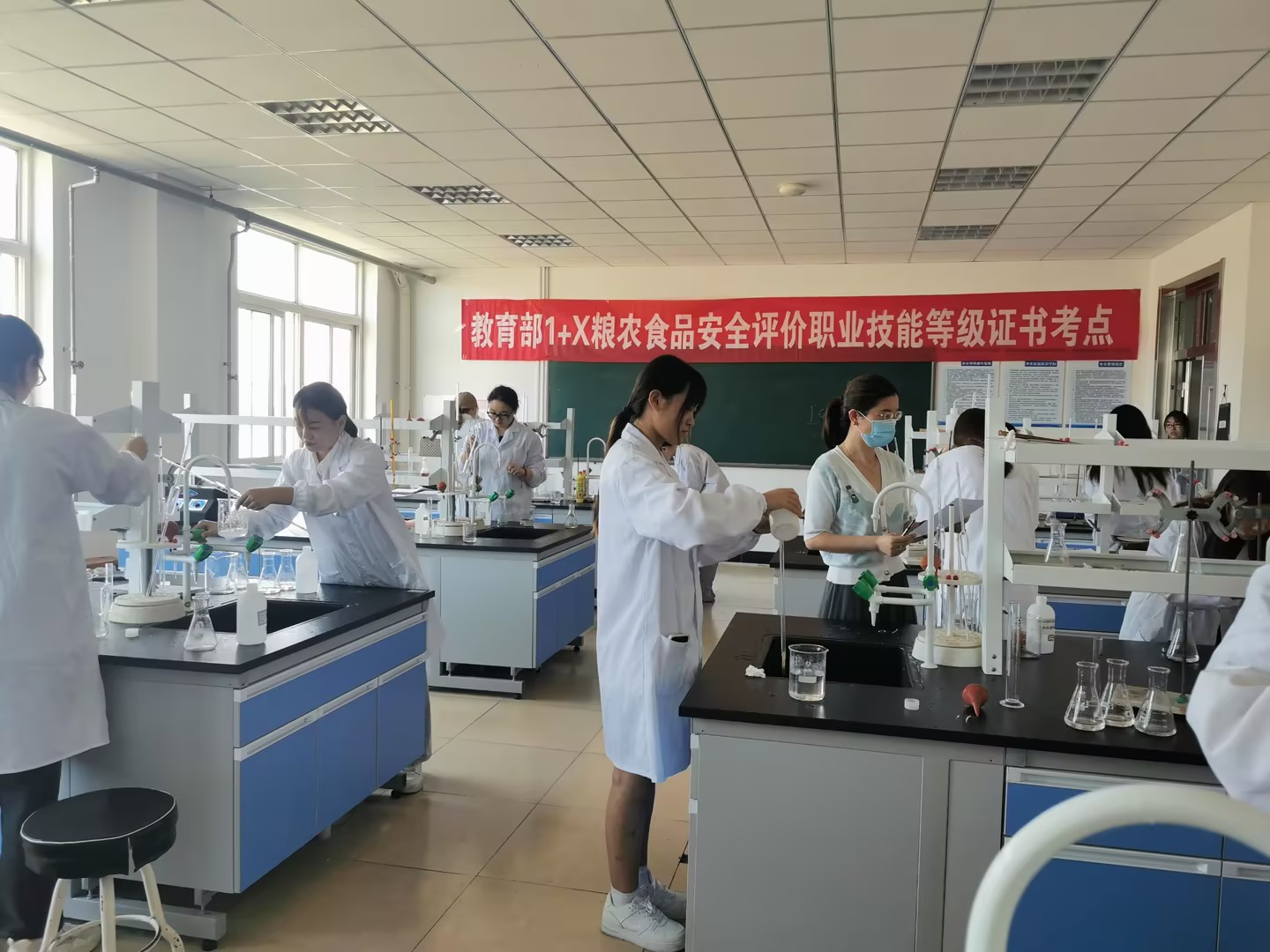 6月18日,粮油食品学院组织2021级粮食储运与质量安全、粮食工程技术与管理专业学生开展1+X粮农食品安全评价技术职业技能等级证书考试工作。