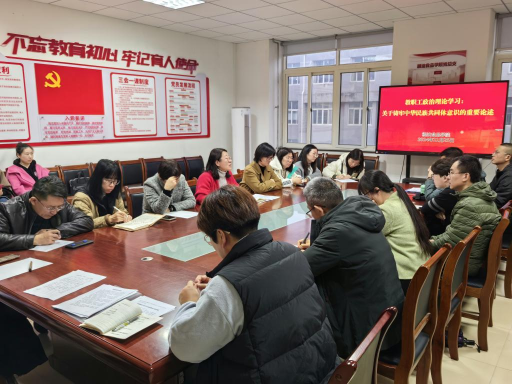 11月25日,粮油食品学院开展铸牢中华民族共同体意识宣传教育活动。黎海红院长主持会议,全院教师共同参与这场学习交流活动。