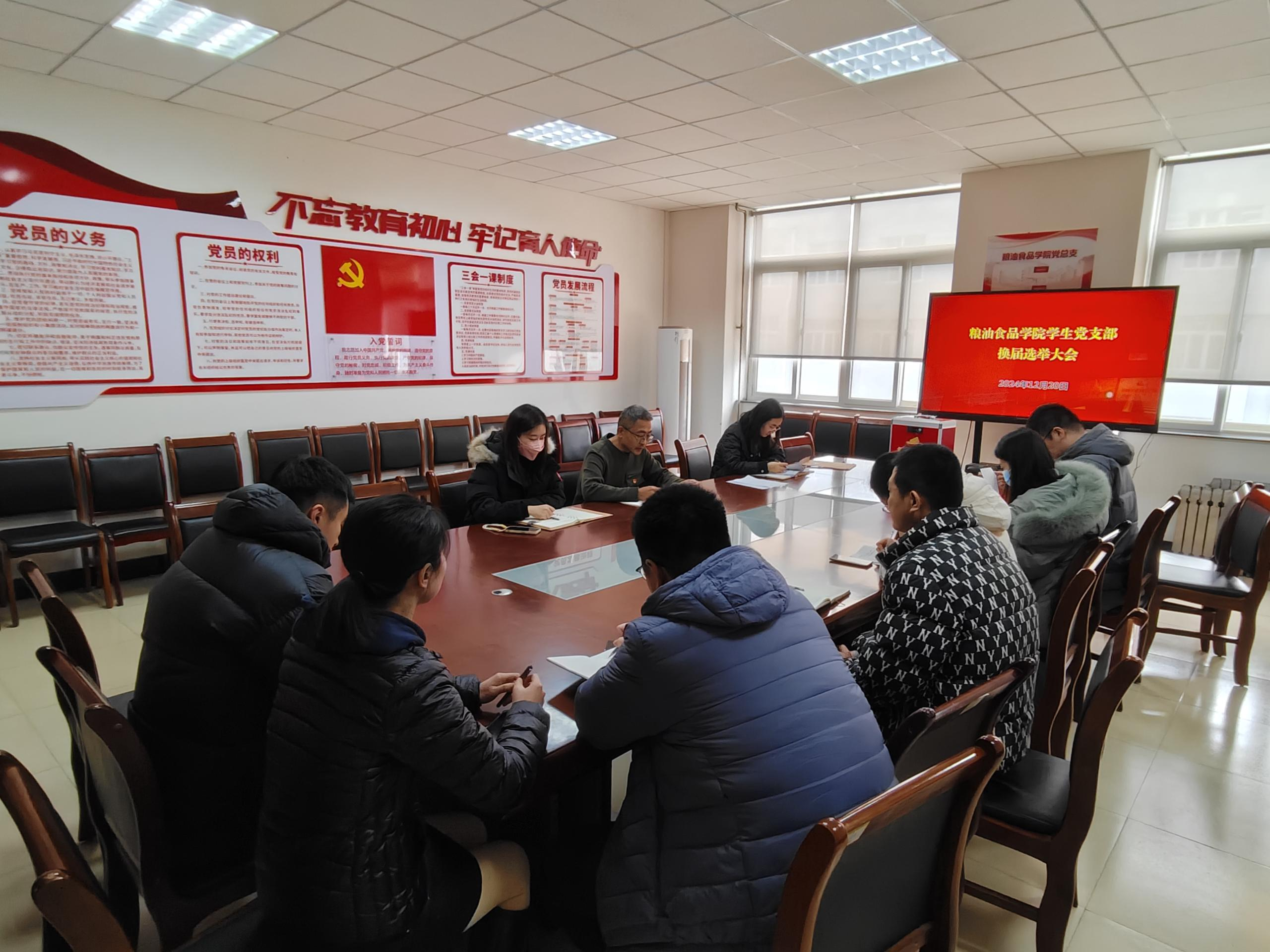 为进一步夯实基层党组织建设,发挥党支部的战斗堡垒作用和党员的先锋模范作用,促进党建工作提质增效,2024年12月20日,粮油食品学院学生党支部于实训楼F302党员活动室召开支委换届选举大会,全体党员参加。