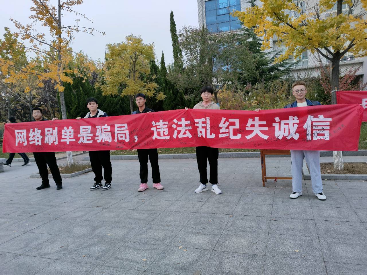 为了杜绝网络诈骗行为的发生,加强校园安全建设,粮油食品学院举办防诈骗签名活动,调动学生参与的积极性,动员全体学生广泛参与其中,同学们在参与活动中做出应有承诺,共同为建设安全校园贡献自己的力量。