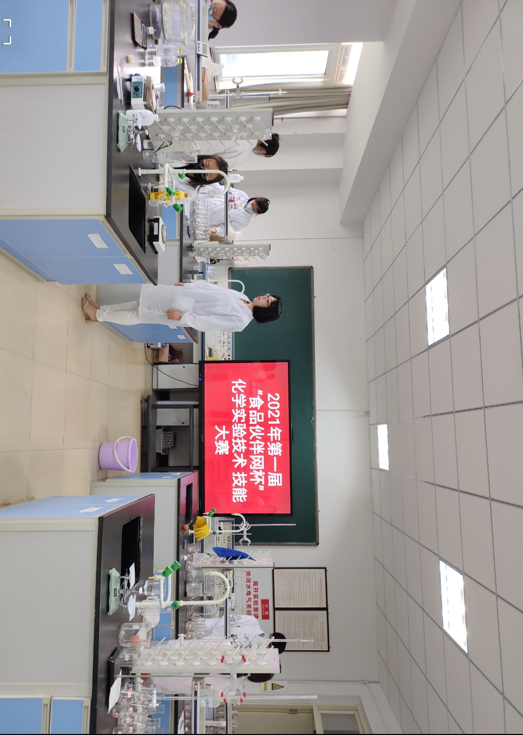 2021年6月24日,借着全校技能大赛的东风,粮油食品学院第一届“食品伙伴网杯”化学实验技术技能大赛如期而至,在实训楼F515共八名选手参加了本次技能大赛,由孙露敏教授和黄丛聪老师担任评委。