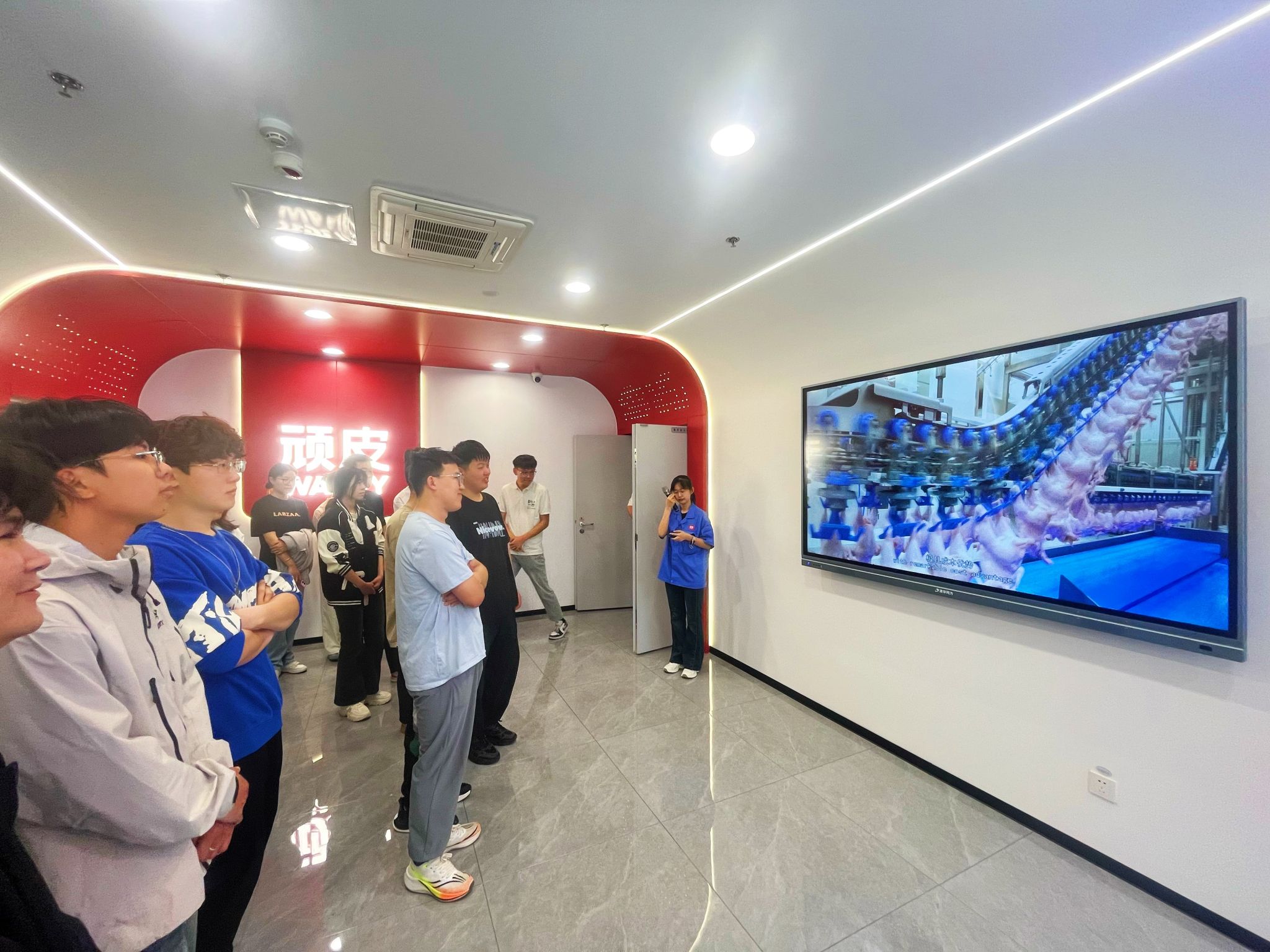 作为亚洲宠物食品行业的领军企业,烟台中宠食品股份有限公司的5.0智慧干粮工厂堪称行业标杆。师生一行首先探访了这座融合了尖端技术与创新理念的现代化生产基地,工厂内,中央控制室大屏上显示着所有设备的运转情况,车间内机械臂高效与精准的作业,让师生们近距离感受“科技赋能粮食产业”的场景。