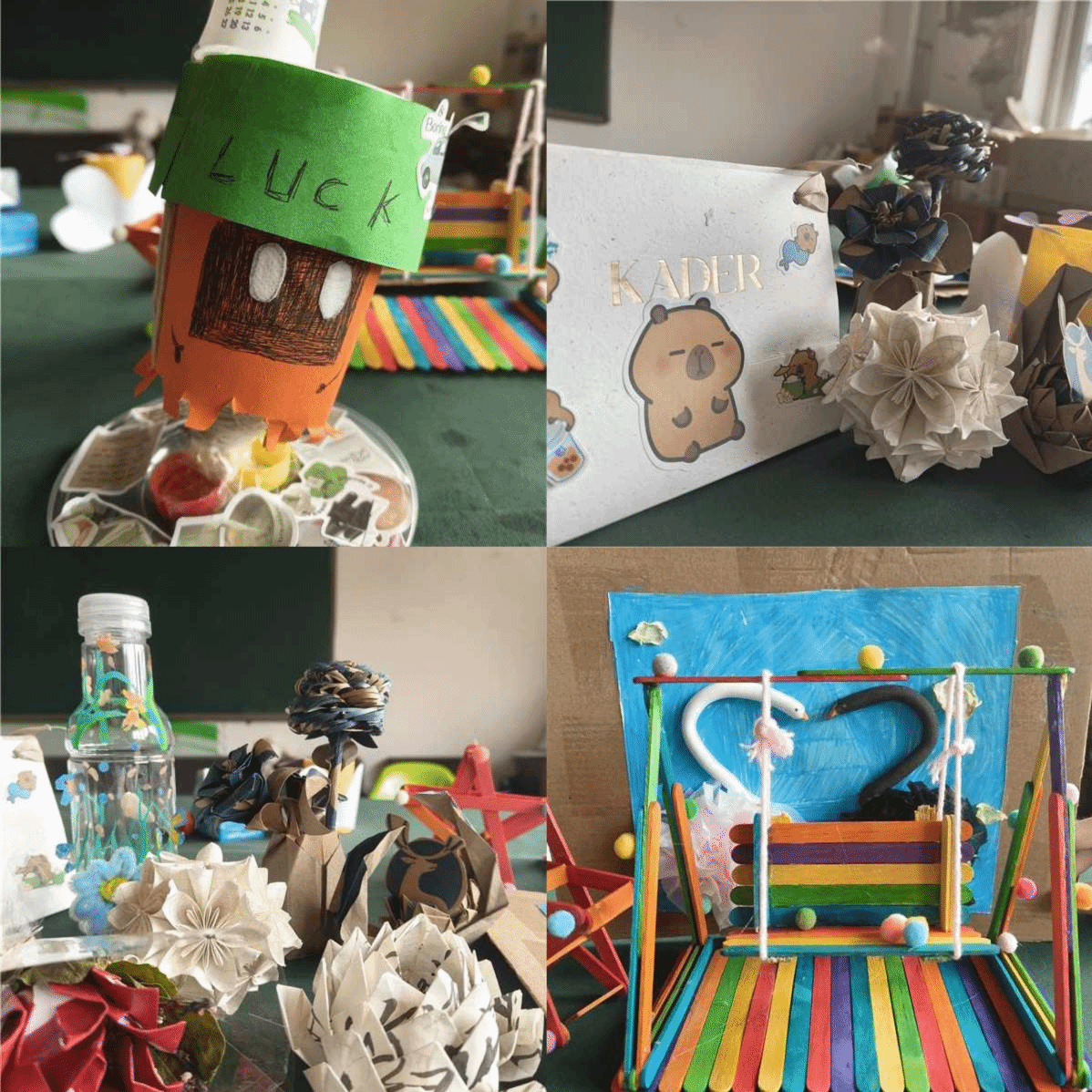 劳动赋能显身手,废品焕新践环保。在“劳动赋能,废品焕新”活动中,组织学生利用废旧物品开展创意改造。学生们将废弃纸箱、塑料瓶、易拉罐等材料变废为宝,制作出笔筒、插画、装饰画等实用艺术品。“通过这次活动,我不仅学会了废物利用的技巧,更体会到劳动创造价值的成就感。”参与活动的同学表示,未来会将这种环保理念融入日常生活。劳动教育是资助育人的重要环节,通过实践锻炼学生的动手能力与责任感,帮助他们树立“自立自强”的信念。