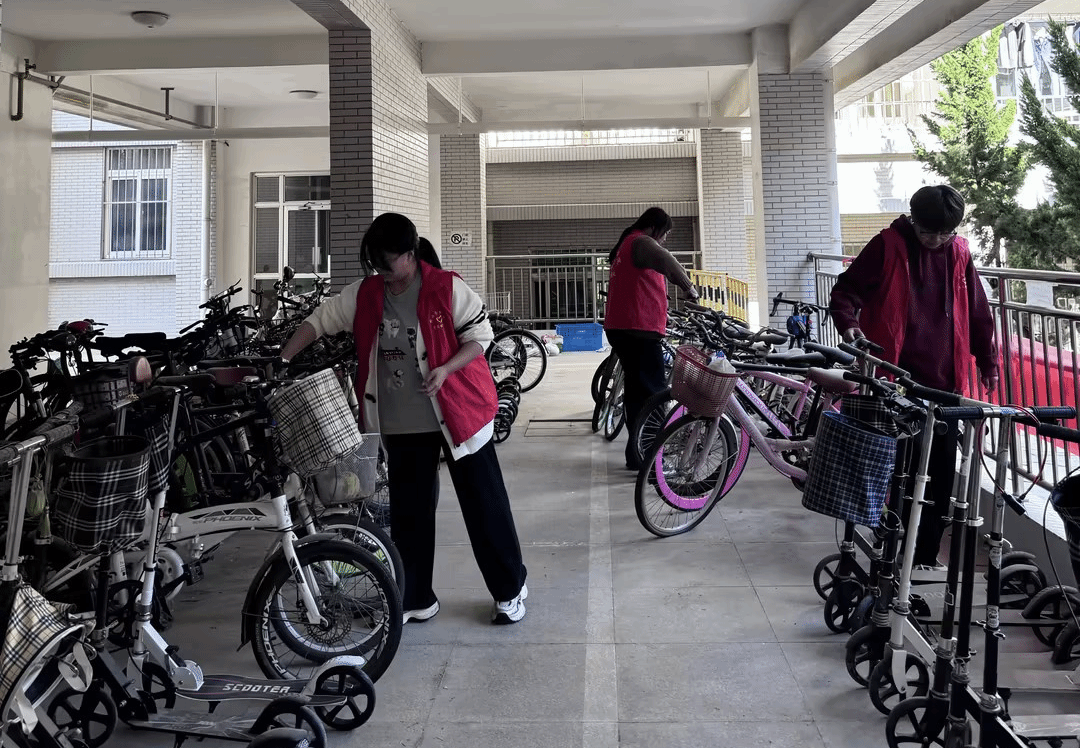 活动期间,志愿者们分为两组展开行动。一组深入公寓楼各楼层公共区域,手持清洁工具,仔细清扫走廊地面,擦拭楼梯扶手和公共门窗,并对卫生死角进行重点清理。他们弯腰捡拾散落的垃圾,踮脚清除墙面的污渍,确保每一处公共空间焕然一新。另一组志愿者则负责整理公寓外围环境,将随意停放的自行车整齐排列至指定区域,清理绿化带中的纸屑和塑料瓶,并张贴文明标语提醒同学们保持环境卫生。