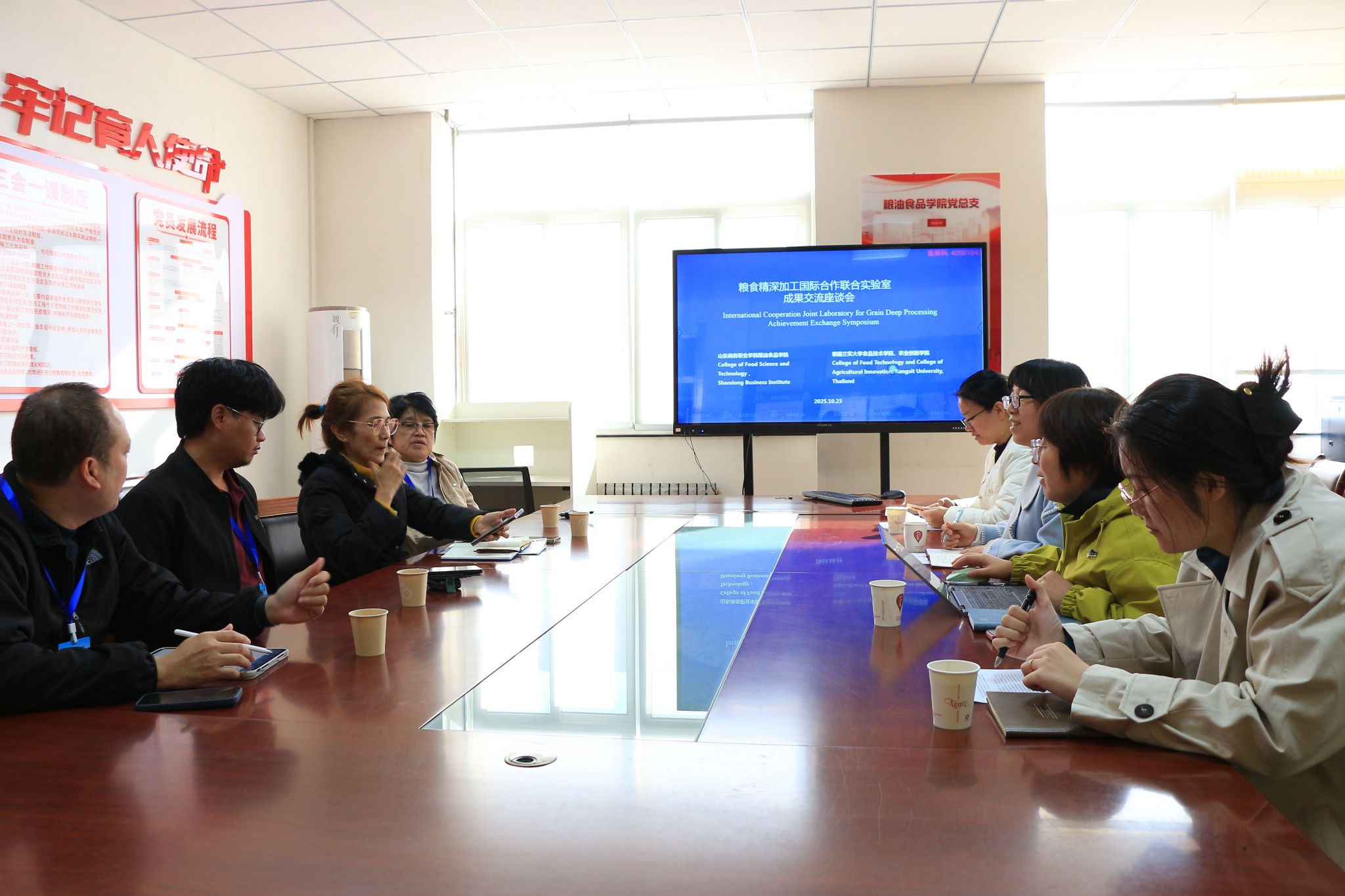 10月23日,正值中国—东盟 “一粒粮的旅程” 青年研学营开展之际,山东商务职业学院粮油食品学院教师代表与泰国兰实大学农创学院、食品学院教师代表,在粮油食品学院会议室举行粮食精深加工国际合作联合实验室专题座谈会。双方围绕科研合作方向、联合实验室建设细节及具体项目落地展开深度洽谈,为中泰粮食领域产学研协同按下 “加速键”。
